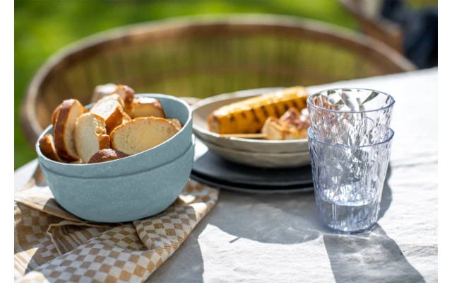 De serviesset is gemaakt van milieuvriendelijke thermoplastische kunststof en brengt een frisse wind door elke buitenlunch of terrasdiner en is ook bestand tegen turbulente feesten zonder scherven. Het stevige materiaal en de moderne kleuren brengen altijd het goede gevoel van een mooi gedekte tafel over. Het materiaal blijft lang mooi en is uiteraard vaatwasmachinebestendig. Ideaal voor alle buitenactiviteiten waarbij je niet zonder stijlvol servies wilt.